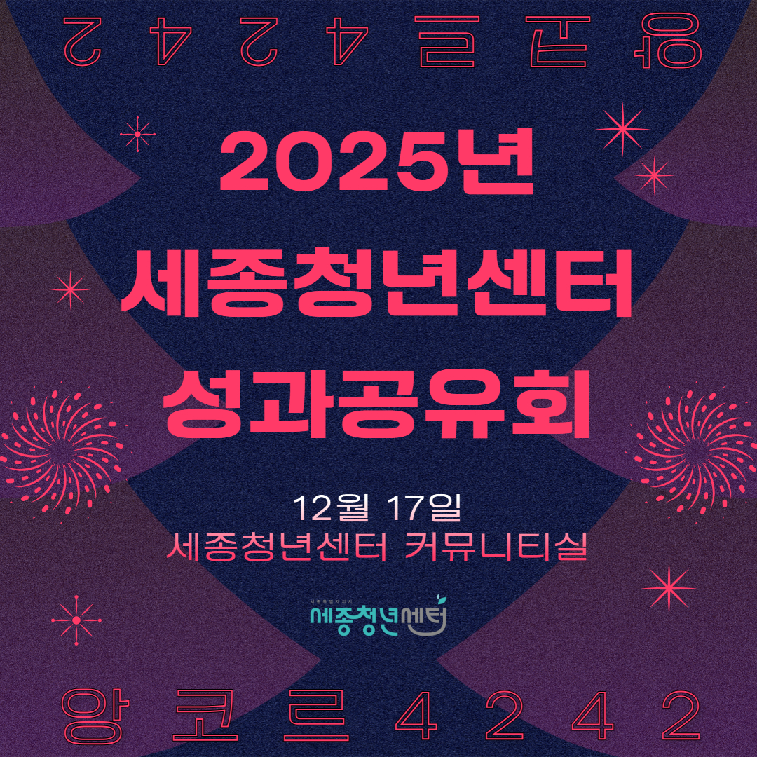 12월 17일, 세종청년센터 커뮤니티실에서 모두 함께 공감하고 즐기는 축제의 장! 세종 청년들의 이야기, 그 특별한 마무리에 여러분을 초대합니다.